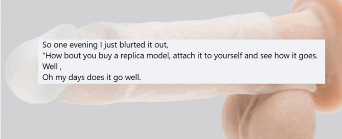 When the cock in your life is soft, that isn't necessarily the end of the harder side of sex. Some partners love it when people use strap-on dildos or penile extension sleeves to enable more robust penetrative sex without needing a flesh-and-blood penis to be hard. What follows are just two real life stories from heterosexual couples. They are by no means the only ways to play sexually beyond erections. Wife invites husband to use strap-on dildo Here's the full anonymous post from the Facebook group comment excerpted in the image above, shared to simply expand your sense [...]
